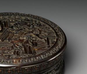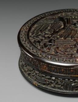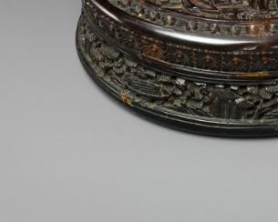宫廷与民间的互动:清代宫廷设有 “造办处”,会招募民间优秀工匠制作玳瑁器物,部分 “玳瑁雕人物故事图盖盒” 的工艺细节(如精细的线刻、规整的构图)带有明显的 “宫廷风格”,推测为造办处制作或民间贡品;而民间制作的盖盒则更注重实用性,题材更贴近生活(如 “婴戏图”“福寿图”),工艺相对简化,价格也更易被富商、文人阶层接受。