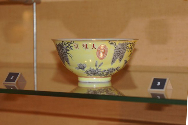 清代黄地青花花卉纹 “大雅斋” 款碗