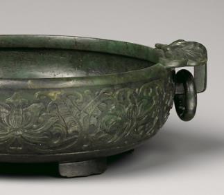 器身:整体呈敞口、浅腹、圈足的经典洗形 —— 口沿微外撇,边缘打磨光滑圆润(无锋利感,体现 “治玉如治丝” 的精细);腹部略鼓,线条流畅柔和,从口沿到腹底过渡自然,无生硬转折;圈足为矮圈足,足底平整,打磨精细,底部可能刻有隐晦的 “乾隆年制” 款识(部分乾隆宫廷玉器款识浅细,需近距离观察或借助工具识别,也有少量 “无款” 宫廷用器,以工艺与材质定年代)。