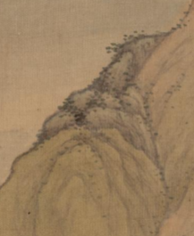 本品规格为12.6 x 17.3 厘米。画面呈现典型的山水布局,近景、中景、远景层次分明。近景处,几棵树木错落分布,树叶茂密,增添生机;中景是巍峨的山崖,山石纹理清晰,形态雄浑;远景中,山峦连绵,与天空相融,营造出悠远的空间感。幽壑藏于山间,似有静谧气息流淌,“幽壑静林” 的景致由此展开,展现出自然山水的宁静与宏大。以淡雅的色调为主,山石的土黄、浅褐与树木的深绿相互搭配,和谐自然。这种色调营造出古朴、清幽的氛围,契合清代文人画追求的 “雅” 趣,体现出樊圻对色彩运用的精妙把控,让观者仿佛置身于这片宁静的山水之间。