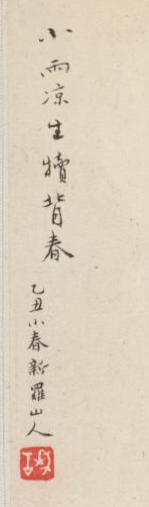 本品规格为11.2 x 13.1 厘米。绘一牧童,戴斗笠、着素衣,骑于牛背,姿态悠然;牛体硕壮,低头缓行,传递 “牧牛归去横牛背” 的闲适。老树虬枝(树干弯曲,枝桠伸展 ),点缀淡绿叶片;坡石、丛竹简笔勾勒,营造 “郊野春景” 氛围,呼应题字 “小雨凉生犊背春”。