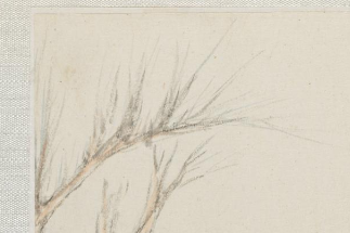 本品规格为15.4 x 18.5 x 3.1 厘米。采用 “简素留白” 布局,以浅淡墨色勾勒人马、枯树,大面积空白作背景,营造出悠远、静谧的氛围,符合清代文人画 “以空为有,以无胜有” 的审美追求。以简约线条绘马身,鬃毛、尾羽略作渲染,体态写实却不失灵动,低头觅食的动态自然生动,体现画家对动物神态的观察入微。着素衣,身形小巧,姿态闲适,与马形成 “人 - 畜相依” 的温馨场景;面部以淡墨点染五官,虽简笔却传神,传递出宁静、恬淡的情绪。寥寥数笔勾出枝干,枯枝无叶,强化了画面的萧索、幽远感,也暗合清代文人画常见的 “荒寒意境”。