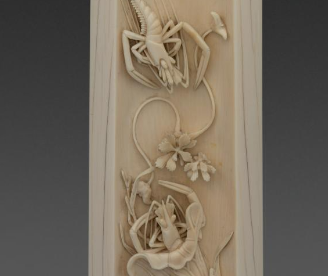清代象牙雕虾荷图臂搁