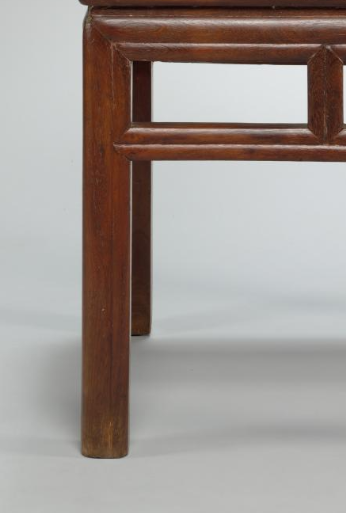 本品规格为48.3 x 48.3 x 48.3 厘米。采用攒边装板工艺,凳面边框与芯板拼接严整,既稳固又具美感,是传统木工技艺的体现。直足设计简约,四条腿足笔直利落,与凳面、牙板等部件通过榫卯相连,结构坚实,传承古人精湛工艺。整体方正端庄,线条简洁流畅,无过多繁杂装饰,契合清代家具追求质朴、实用的审美倾向,又因工艺细节彰显精致,呈现出简洁而不失典雅的格调,是清代民间或文人家具的典型代表,承载着时代的生活与审美记忆 。