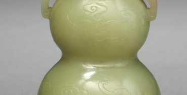 本品规格为13.6厘米。以温润黄玉雕琢而成。整体呈葫芦形,上下两肚圆润饱满,线条流畅。颈部两侧设龙形双耳,造型精巧。盖顶卧一瑞兽,生动鲜活。器身浅刻云纹,细腻流畅,与葫芦形制相衬,寓意吉祥。玉质莹润,工艺精湛,融合实用与审美,尽显清代玉器典雅富丽风格,是研究清代玉器工艺与文化的实物范例 。
