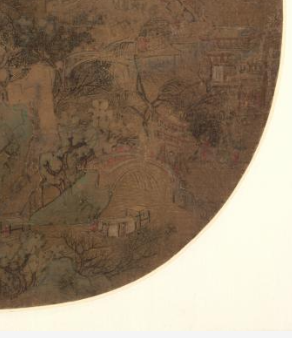 在北宋时期,团扇最基本的功能是纳凉。 这幅绘制了精美青绿山水楼阁的团扇,在炎炎夏日里, 使用者可以手持它扇风取凉,同时还能欣赏到扇面上的美妙画作, 兼具实用与审美功能 。
