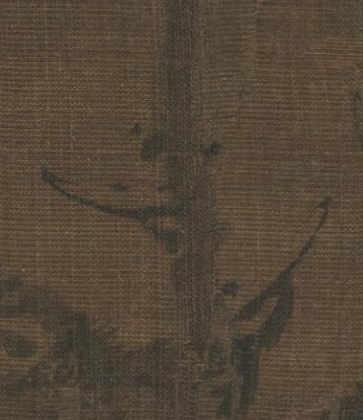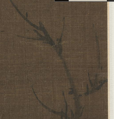 本品规格为24.3 x 21 厘米。画面以棕褐色绢本为底,营造出沉静的氛围。一只雀鸟栖息在枯瘦的枝桠上,雀鸟以简洁的水墨线条勾勒形态,羽毛的质感通过墨色的浓淡变化表现,神态灵动;枯树枝干用劲健的笔墨描绘,枝桠疏朗,与雀鸟相互映衬,整体画面简约空灵,尽显水墨写意的清逸之趣,传递出清幽孤寂的意境,展现了中国传统花鸟画注重意境与笔墨神韵的艺术特点。