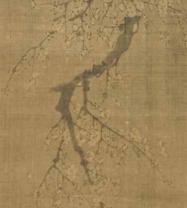 本品规格为127.2 x 66.8 厘米。画面以绢本为底,采用墨笔技法绘制梅花枝干。梅枝虬曲苍劲,或伸展、或盘绕,线条简洁而富有力度,尽显枝干的坚韧与古朴之态。枝头点缀着疏淡的梅花,墨色浓淡相宜,将梅花的清雅之姿悄然展现。背景色调素净,更衬托出梅枝的孤高与梅花的幽韵。整体构图疏朗空灵,笔墨简约却意境深远,体现了明代文人画注重以形写神、追求笔墨情趣与内在精神表达的艺术特点,传递出梅花傲雪凌霜的高洁品格,给人以沉静、雅致的审美感受。