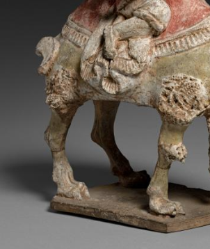 在唐代,厚葬之风盛行,人们相信死后世界与现世类似, 因此会将各种器物作为陪葬品放入墓中,以保障死者在另一个世界的生活。胡人骑骆驼俑是常见的陪葬明器之一 ,骆驼被誉为 “沙漠之舟”,是丝绸之路贸易中的重要交通工具,胡人形象则代表了往来于丝绸之路的商人或使者, 这类俑象征着墓主人生前的财富、地位以及与外界的交流,也寄托着家人对死者在来世能够继续享受富足生活、出行顺利的美好祝愿。