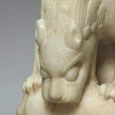 本品规格为14 x 7.6 厘米。整体为玉雕作品,主体是獬豸造型。獬豸身躯壮硕,肌肉线条隐现,头顶鬃毛以细密线条雕刻,呈层叠状,富有韵律 。它前爪牢牢按住身下小兽,双目圆睁、怒目而视,嘴部紧抿,将獬豸的威严、凶猛刻画得淋漓尽致。身下小兽蜷缩,姿态挣扎,与獬豸的强势形成鲜明对比,凸显 “擒兽” 动态张力。