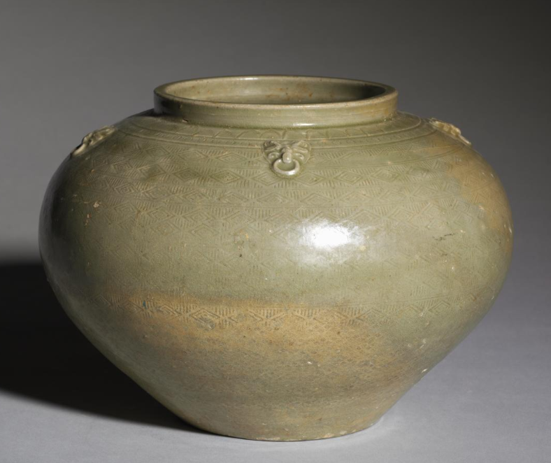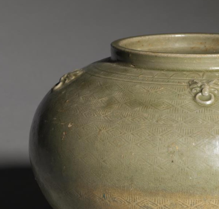 西晋青釉印花四系罐