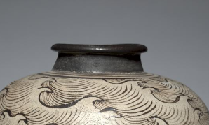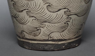 本品规格为直径16.7厘米,高度26.3厘米。梅瓶经典小口、短颈、丰肩、敛腹,线条流畅,端庄古朴,符合元代梅瓶形制,兼具实用与审美。以白地黑花为饰,白釉为底,黑彩绘海水纹。海浪线条细密灵动,如波涛翻涌,层次分明,展现工匠高超绘画与构图技艺,海水纹寓意吉祥,贴合元代文化内涵。