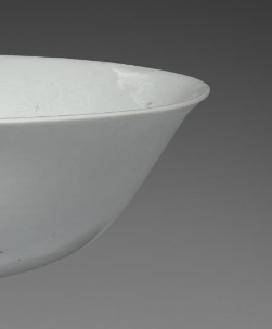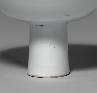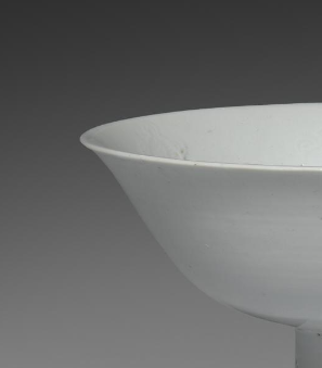 本品规格为10.2 x 15.3 厘米。碗体呈敞口状,口沿线条舒展,腹部微微下收,过渡自然流畅。底部连接着修长的高足,高足挺拔,使整个碗具显得轻盈而端庄。碗身施卵白釉,釉色白中微泛青灰,恰似鹅卵的色泽,釉面温润细腻,质感莹润,虽历经岁月,仍能感受到其古朴雅致的韵味。碗壁上带有暗花装饰,暗花在温润的釉色映衬下,若隐若现,增添了器物的层次感与艺术美感,体现出元代制瓷工艺在装饰技法上的巧妙运用。