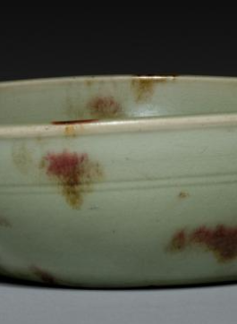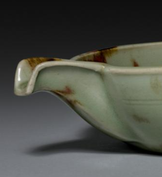 本品规格为5.6 x 21.5 厘米。呈典型匜的形态,浅腹、宽口,一侧出单柄,柄部线条流畅,便于持握 。整体造型简约实用,符合元代陶瓷注重功能与审美平衡的风格,体现古代 “沃盥之礼” 中注水器的用途特征。施青釉,釉面温润,呈淡雅青色调,尽显含蓄古朴之美 。釉面散布褐斑,色斑自然晕染,或深或浅,似天然形成,为简洁器型增添灵动变化,是元代青釉褐斑装饰工艺的体现,借窑变或点彩技法营造独特艺术效果。
