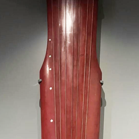 材质与色泽:琴身以木材为主要材质,通体髹以红色漆,历经岁月洗礼,色泽依然沉稳,带有古朴典雅的气质。木材的纹理在漆面下若隐若现,增添了古琴的韵味。
