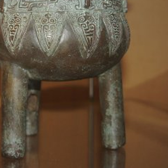 细节:鼎身装饰有精美的纹饰,可能是饕餮纹、云雷纹等典型的商周青铜器纹饰,这些纹饰线条流畅,图案立体感强,展现出高超的铸造工艺;鼎足上也有雕刻装饰,细节丰富,进一步体现了当时工匠的精湛技艺。