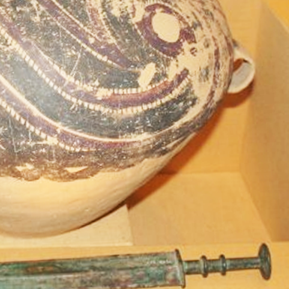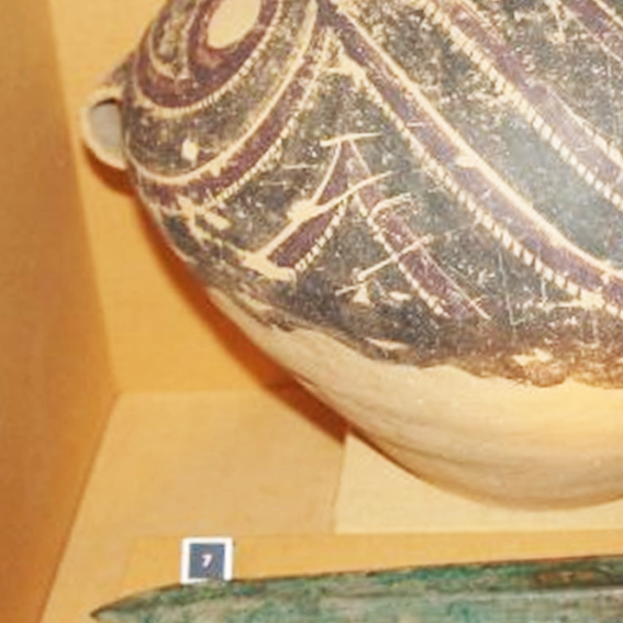细节:罐身的彩绘图案精美,主要为流畅的涡旋纹、波浪纹等几何纹饰,线条灵动,富有韵律感。这些纹饰相互交织,构成了复杂而有序的画面,展现了当时高超的绘画技艺和审美水平。双耳的设计不仅实用,也与罐体整体造型和谐统一。