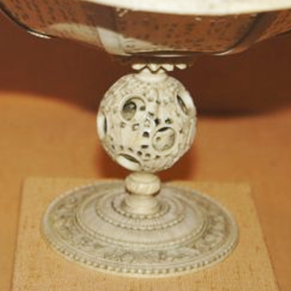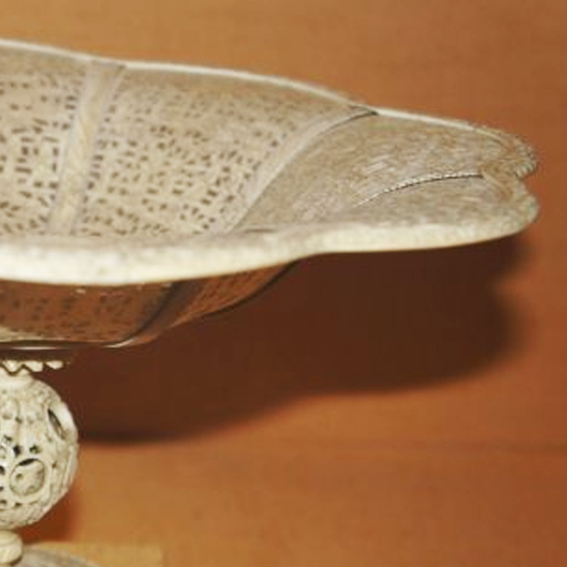 清代是中国象牙雕刻艺术的鼎盛时期之一,宫廷内务府造办处以及民间都涌现出许多技艺精湛的象牙雕刻工匠。象牙因其材质细腻、易于雕刻,常被用来制作各种精美的工艺品,供宫廷贵族和富裕阶层赏玩、使用。象牙雕刻工艺在清代融合了多种技法,包括圆雕、浮雕、镂空雕等,题材广泛,涵盖人物、花鸟、山水等 。此类象牙雕高足盘不仅是实用的盛器,更是兼具艺术价值和文化内涵的工艺品,反映了当时高超的手工艺水平和贵族阶层的审美情趣。但现代出于对大象的保护,象牙制品的交易受到严格限制。