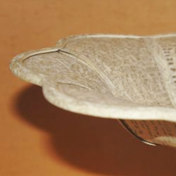 整体造型:盘子口沿呈花口状,犹如绽放的花瓣,造型优美。浅腹,底部由一个镂空雕刻的球形部件连接着圆形的高足,整体造型轻盈且富有层次感。