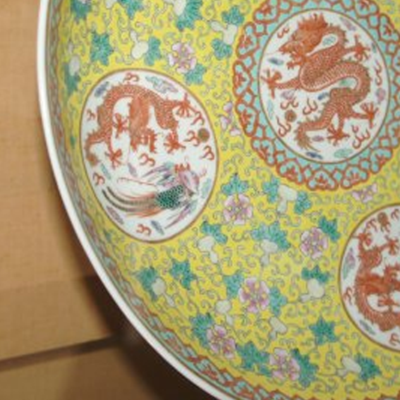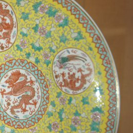 清代 黄地粉彩龙纹盘
