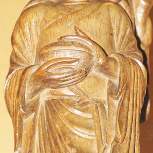 清代,木雕工艺在民间和宫廷都得到了广泛发展,技艺达到了较高水平。和合二仙是中国传统文化中的神话人物,象征着和谐、美满、团圆 ,常被作为雕刻题材,出现在各类工艺品中。人们通过雕刻和合二仙像,表达对美好生活的向往和祝福,同时也反映了当时社会的民俗文化和审美观念。