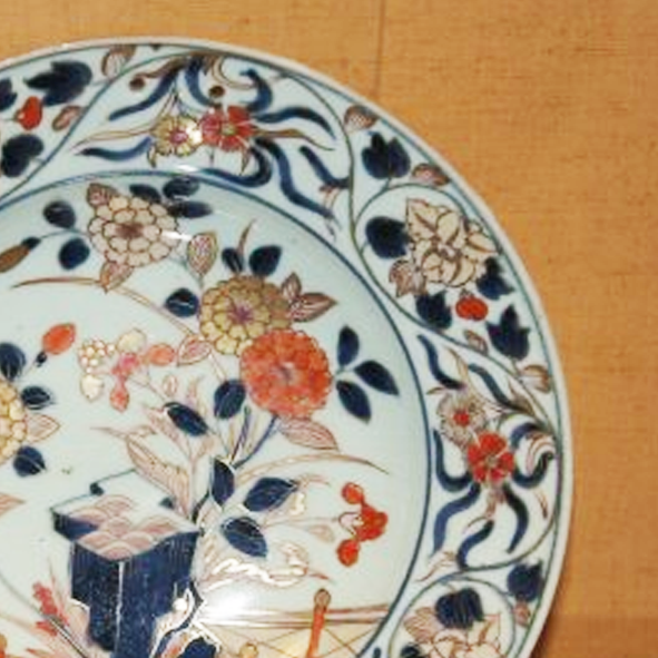 细节:盘心绘有花卉、花盆等图案,花卉形态逼真,花瓣层次分明,枝叶舒展自然。盘口沿处装饰有一圈连续的花卉、卷草等图案,线条流畅,增加了器物的精致感,体现了清代瓷器在装饰上注重细节的特点。