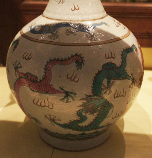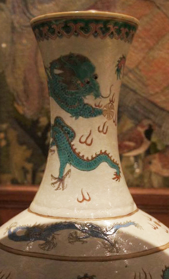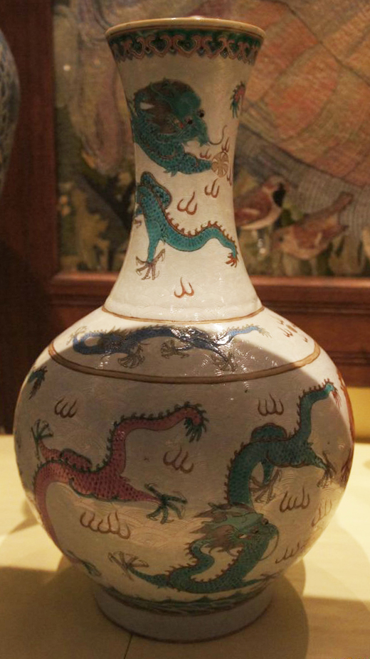 五彩龙纹长颈瓶