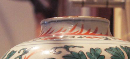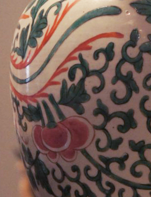 材质与色泽:胎体由瓷土烧制,质地细腻坚硬。罐身施白釉,釉面洁白莹润。五彩釉彩丰富,红、绿等色彩鲜艳明亮,对比强烈,虽历经岁月,仍具有较强的视觉冲击力。