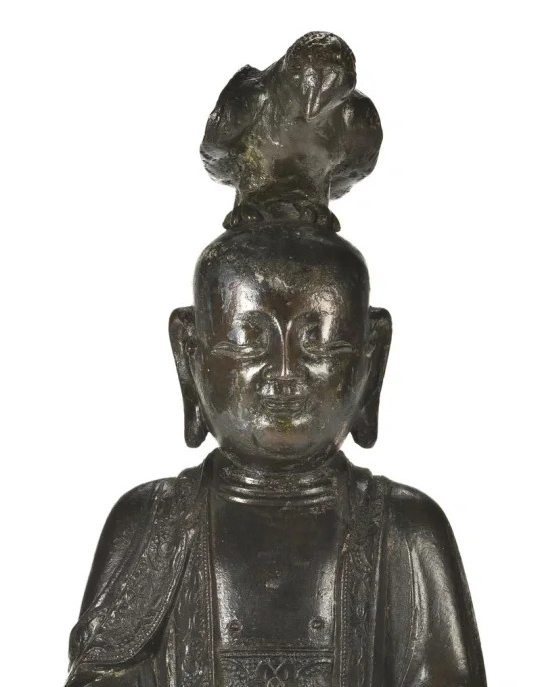明代佛教造像艺术在继承唐宋传统的基础上,发展出自身的风格特点。宫廷和民间对佛教造像的需求促使大量佛像被制作出来,这些佛像不仅用于宗教供奉,也是当时工艺水平的体现。佛教在明代社会生活中占有重要地位,铜质佛像是常见的宗教艺术形式,反映了当时人们的宗教信仰、审美观念以及铸造工艺水平。
