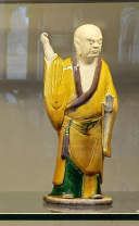 唐代佛教盛行,佛教艺术也得到了极大的发展。三彩作为唐代极具代表性的陶瓷工艺,被广泛应用于制作各类佛像、罗汉像等宗教题材的器物。这些三彩罗汉像不仅是实用的宗教供奉品,也是唐代高超陶瓷工艺和艺术审美相结合的产物,反映了当时社会的宗教信仰、文化艺术水平以及人们对于佛教人物形象的理解和塑造能力。