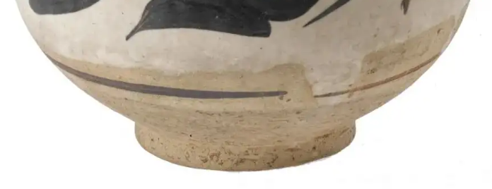 材质与色泽:胎体由瓷土烧制,质地较为粗糙,胎色呈土黄色。器物表面施白釉为底,再以黑彩绘制花纹,白地黑花对比鲜明。因年代久远,白釉部分略显泛黄,黑彩也有一定程度的磨损,增添了历史沧桑感。
