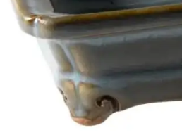 细节:四足设计精巧,呈现出一定的弯曲弧度,不仅起到支撑作用,还增添了器物的美感。釉面有一些细小的开片,这是钧窑瓷器常见的现象,增加了古朴的韵味。器物边缘线条流畅,制作工艺较为精细。