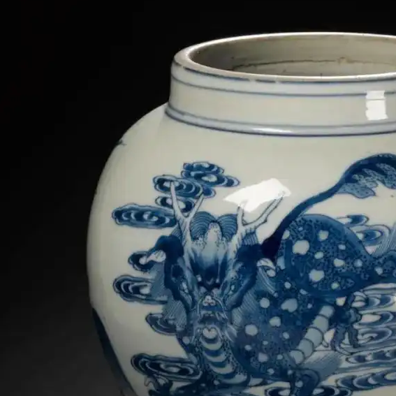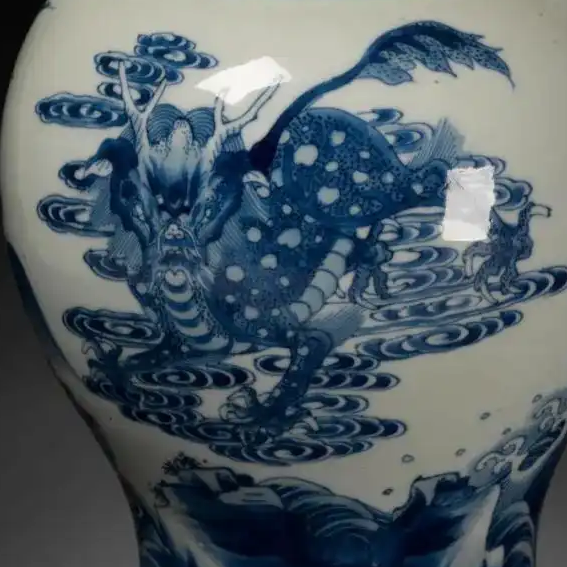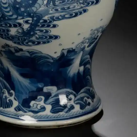清代康熙年间,社会逐渐走向稳定,经济繁荣,手工业得到了极大的发展,景德镇御窑厂和民窑的制瓷业达到了一个新的高峰。康熙时期的青花瓷器以其 “墨分五色” 的高超绘画技巧著称,工匠们熟练掌握了青花料的特性,通过不同的用笔和施料方法,使画面呈现出丰富的层次感。瑞兽作为中国传统文化中的吉祥象征,常被绘制在瓷器上,表达人们对美好生活的向往和祝福。这一时期,瓷器不仅是日常生活用品和艺术品,还通过海上丝绸之路等途径大量出口,成为中外文化交流的重要载体,展示了中国瓷器制作的高超技艺和独特的文化魅力。