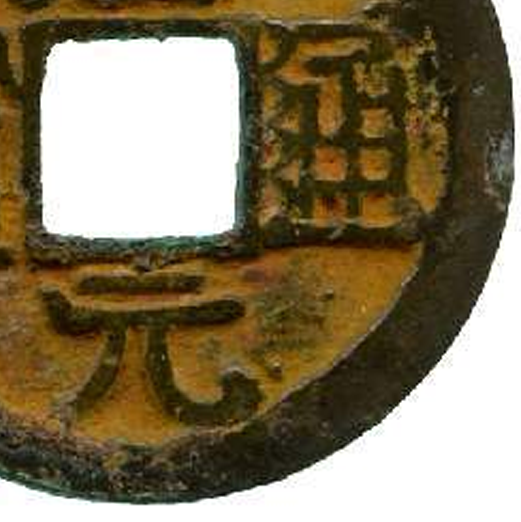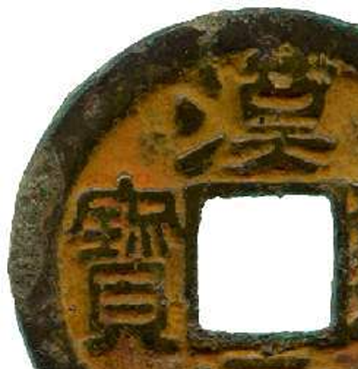 细节:正面铸有 “汉元通宝” 四字,字体为隶书,文字布局规整,笔画较为粗壮。背面较为平整,没有明显的文字或纹饰,仅能看到一些因锈蚀和磨损产生的痕迹。
