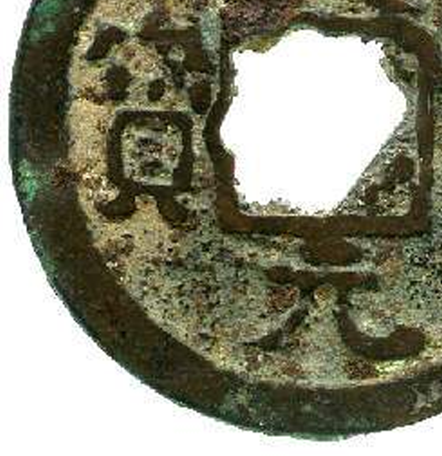 细节:正面铸有 “大历元宝” 四字,字体为隶书,文字布局规整,但因锈蚀部分笔画略显模糊;背面较为平整,没有明显的文字或纹饰,能看到一些因锈蚀和磨损产生的痕迹。