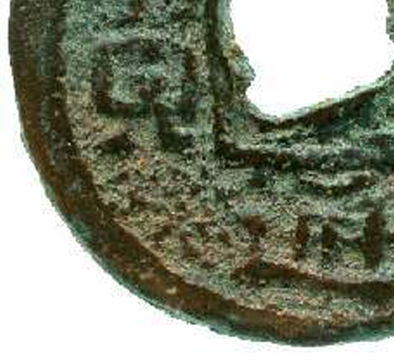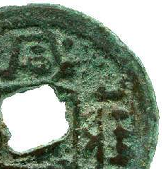 细节:正面可以较清晰地看到 “皇宋通宝” 四字,字体为篆书,文字布局规整,但因锈蚀部分笔画略显模糊;背面较为平整,没有明显的文字或图案,仅能看到一些因锈蚀和磨损产生的痕迹。