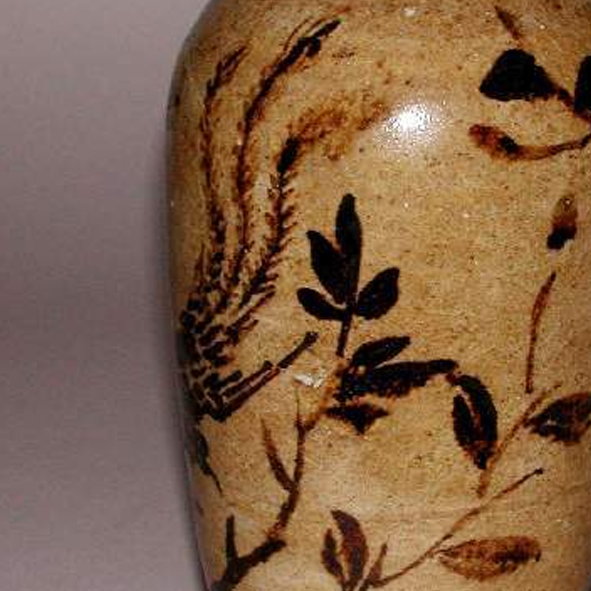宋代是中国陶瓷发展的鼎盛时期,磁州窑系是当时著名的民间窑系之一。磁州窑以白地黑花装饰艺术著称,采用在胎体上直接绘画装饰的手法,题材丰富多样,涵盖了花鸟、人物、山水等,具有浓郁的民间生活气息。这种装饰艺术风格不仅满足了民间百姓的审美需求,也对后世陶瓷装饰产生了深远影响。元代时,磁州窑系在继承宋代传统的基础上,在装饰题材和工艺上有一定的发展和变化, 这件彩绘花鸟纹瓷瓶反映了磁州窑系在宋至元时期的工艺特点和艺术风格,是研究这一时期陶瓷艺术发展的实物资料。