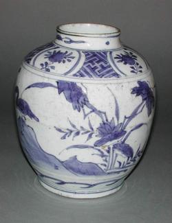 青花水禽纹罐