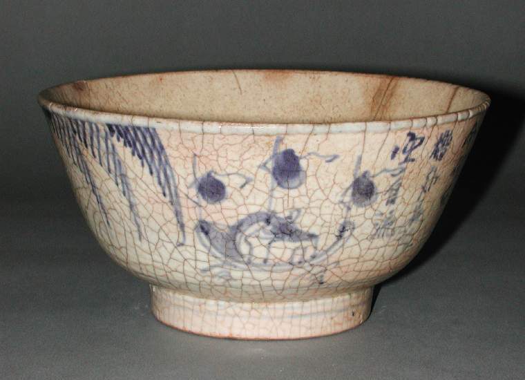 材质与色泽:瓷质细腻,胎体轻薄适中。釉面呈现出明显的开片效果,开片纹路自然,呈网状分布。青花发色淡雅,呈现出深浅不一的蓝紫色调,与开片的釉面相互映衬,显得古朴雅致。