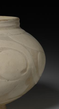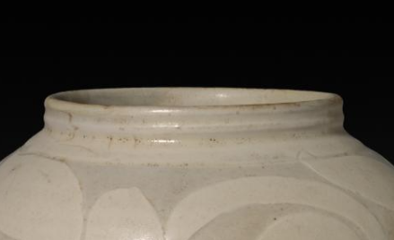 本品规格为直径15.3厘米,高度11.1厘米。整体造型圆润饱满,器身呈鼓腹状,口沿较为规整,底部为圈足,显得古朴而端庄。罐身通体施白釉,釉色温润柔和,虽历经岁月,仍能感受到其淡雅的质感。罐身采用刻花工艺进行装饰,雕刻出的花卉等纹饰线条流畅自然,构图舒展灵动,将花卉的形态与神韵细腻地展现出来,既体现出工匠精湛的雕刻技艺,也彰显出金代陶瓷工艺独特的艺术风格,给人一种简洁而又不失雅致的美感。