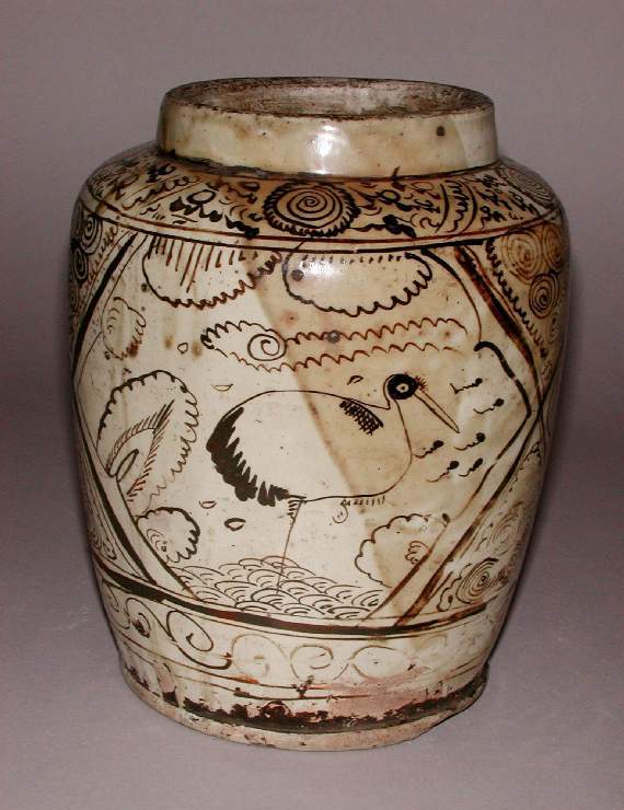 整体造型:直口,短颈,丰肩,鼓腹,平底,整体造型饱满稳重,具有宋代瓷器质朴、实用的风格特点,适合储存物品。