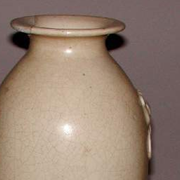 材质与色泽:瓷质细腻,胎体较为厚重。通体施白釉,釉色匀净,呈现出柔和的米白色,釉面有自然的开片现象,增添了古朴的质感。