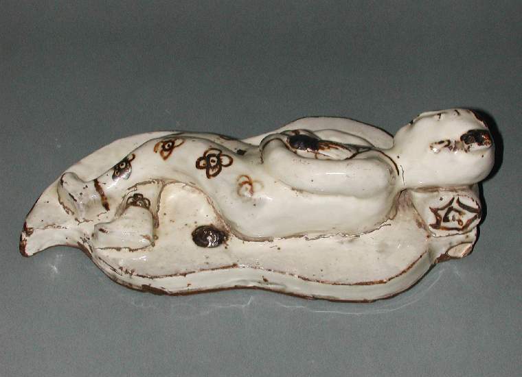 白釉褐彩仕女枕