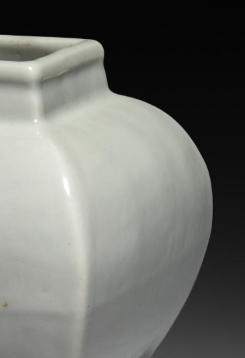 本品规格为12.1 x 10.1 厘米,直径4.8厘米。造型为方口、鼓腹、方底,整体线条简洁流畅,比例协调,呈现出端庄稳重之感。罐身施甜白釉,釉色洁白莹润,如羊脂玉般细腻,釉面光洁,质感温润,尽显明代甜白釉瓷器 “白如凝脂,素若积雪” 的独特艺术效果,将明代制瓷工艺在颜色釉方面的高超水准展现得淋漓尽致。
