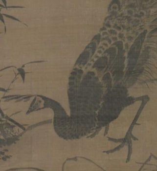 明代的富裕家庭和文人士大夫阶层注重家居环境的营造,会将这幅图轴挂在客厅、书房等显眼位置 。孔雀象征吉祥、富贵,竹子寓意气节、高雅,二者结合的画作能为家居增添文化气息和祥瑞氛围,彰显主人的审美情趣与身份地位 。