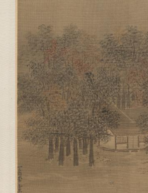 作为典型的南宋 “小景山水”,这幅作品核心用途是通过笔墨语言传递江南秋日的自然之美与文人意趣。画面中 “烟霭弥漫” 的溪塘、“秋树环舍” 的村落,以细腻的笔触和柔和的色调,将江南水乡秋日的静谧、湿润、朦胧感具象化,满足观者对自然意境的审美需求,是南宋文人 “寄情山水” 文化追求的视觉载体 —— 既展现了对自然景观的细致观察,也暗含着对清幽恬淡生活的向往,成为当时文人阶层精神世界的一种艺术投射。