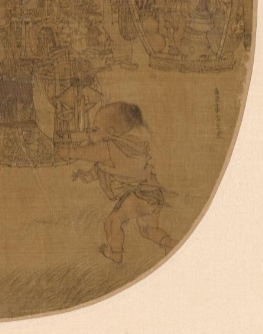 本品规格为24.1 x 26 厘米。画面呈现货郎挑担将至村头、众多妇女儿童围观的热闹场景,是南宋钱塘一带风土人情的写照。货担上货物繁多(涵盖玩具、农具、药材等),既展现宋代商品经济的繁荣,也暗示货郎谋生的艰辛;人物互动充满生活气息,孩童雀跃、大人神情复杂(如货郎疲惫却热情、母亲宠溺又盘算物价、老妇人平和笑意),传递出市井温情与真实生活温度。
