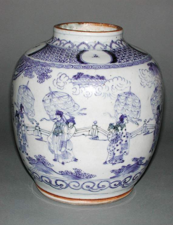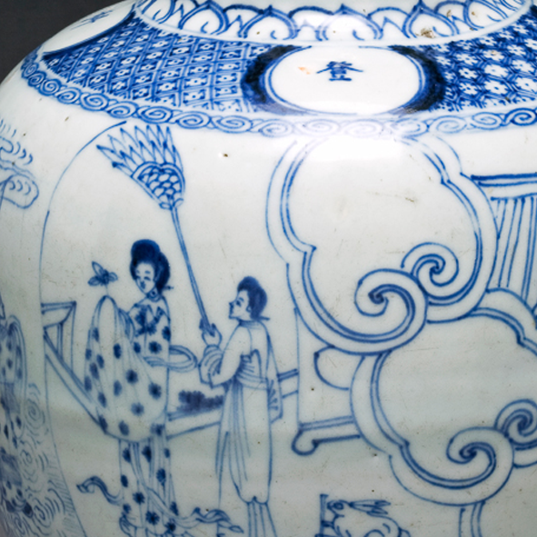 青花仕女图罐