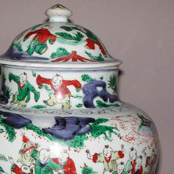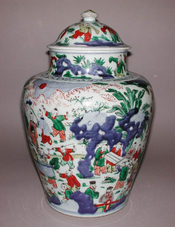 五彩婴戏纹盖罐
