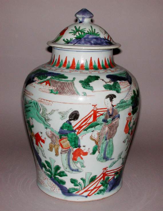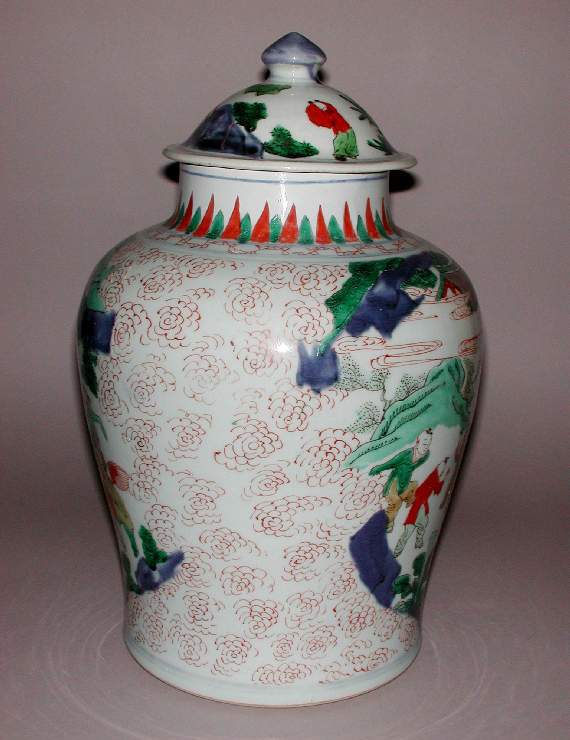 五彩人物故事纹盖罐